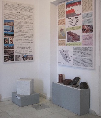 - Δείγματα πετρωμάτων και ορυκτών υλών του οφιολιθικού συμπλέγματος Τροόδους της Κύπρου (σε ιδιαίτερη βιτρίνα με επεξηγηματική πινακίδα).